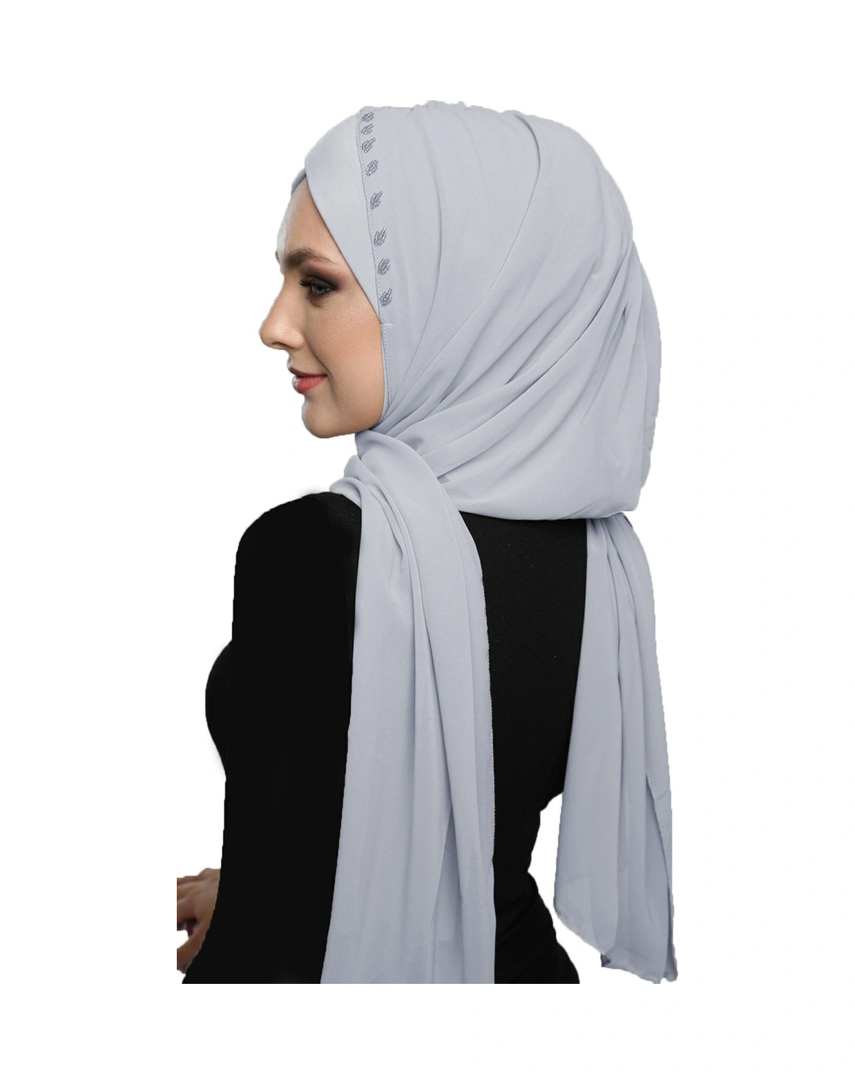 Şallı Takmatik Taşlı Açık Gri Hazır Türban Tesettür Bone Namaz Örtüsü Açık Gri