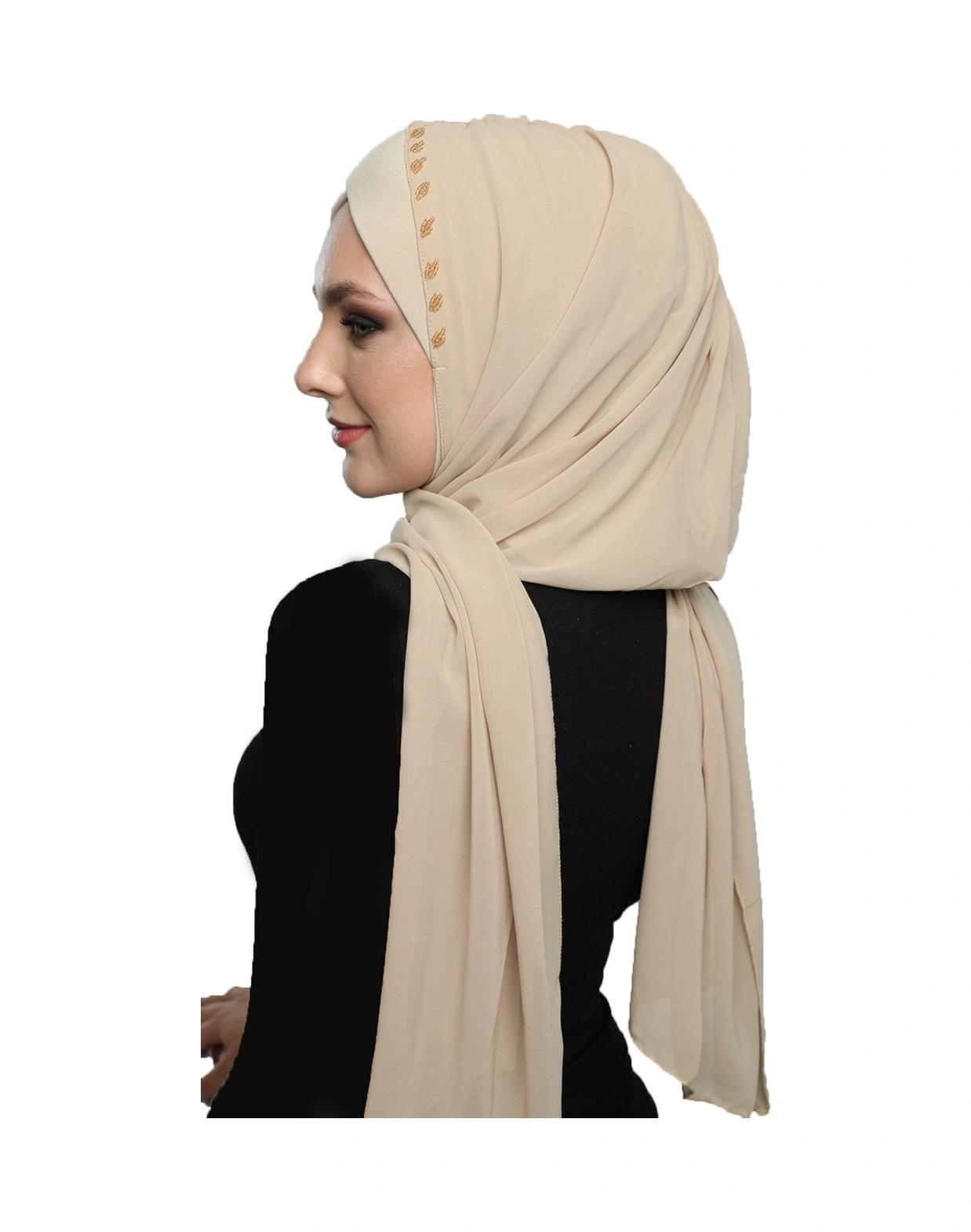 Şallı Takmatik Taşlı Bej Hazır Türban Tesettür Bone Namaz Örtüsü Bej