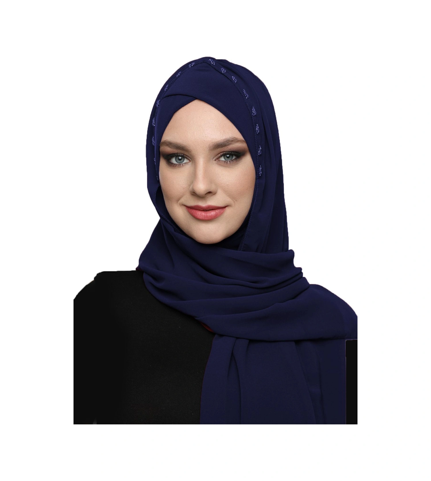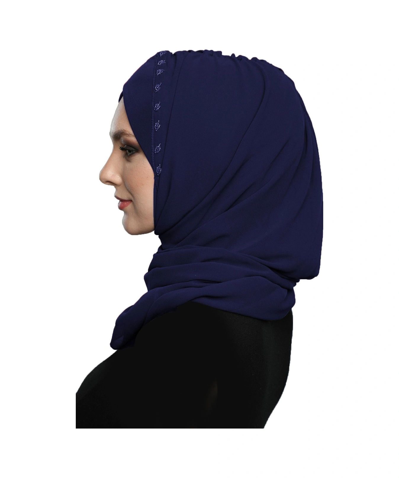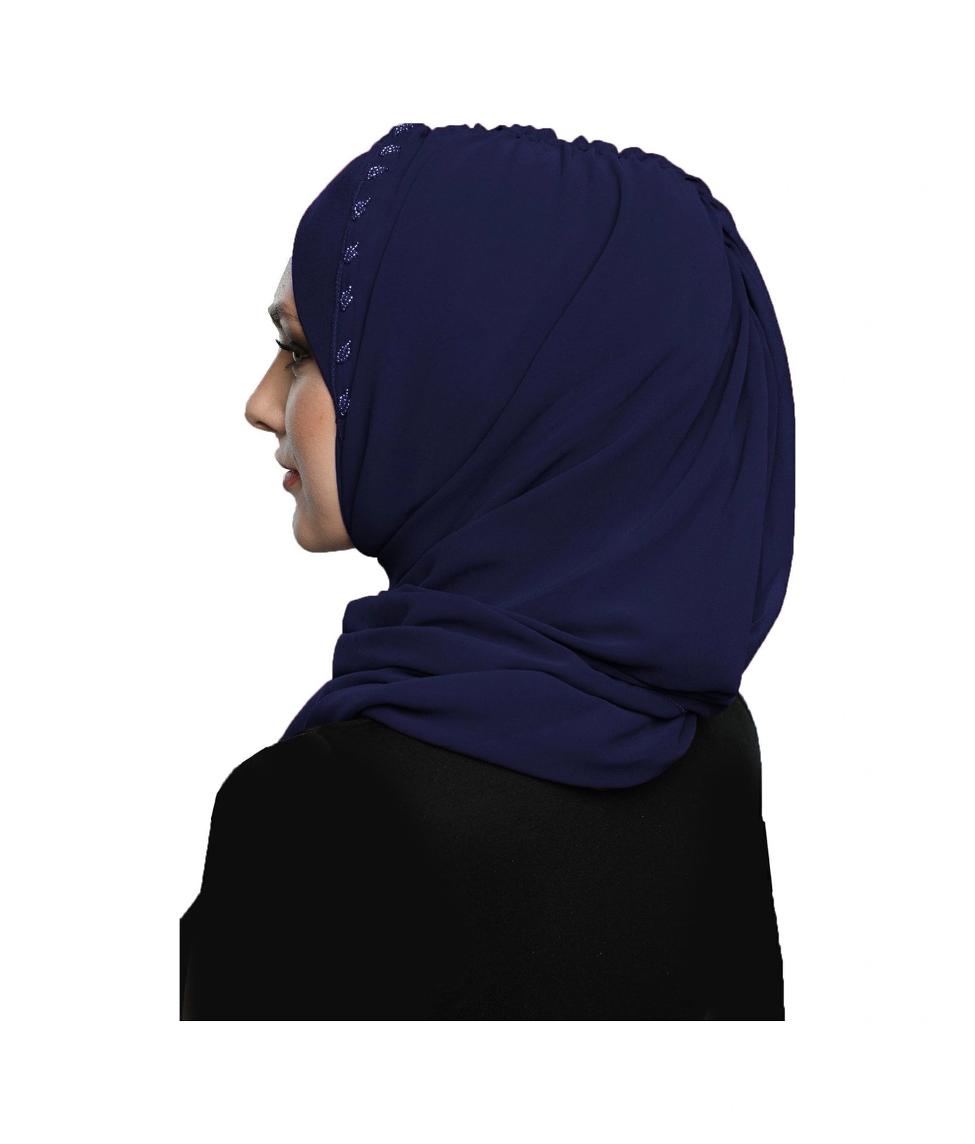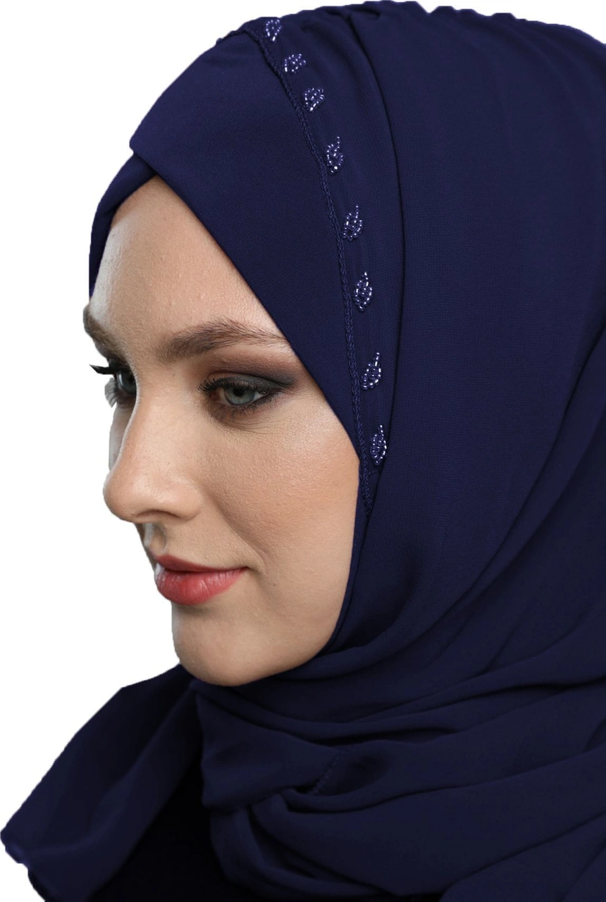 Şallı Takmatik Taşlı Lacivert Hazır Türban Tesettür Bone Namaz Örtüsü Lacivert