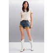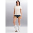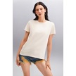 Samantha Kadın %100 Organik Pamuklu Comfort Fit Arkası Uzun Basic Örme Bej T-shirt