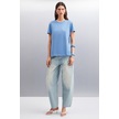 Samantha Kadın %100 Organik Pamuklu Comfort Fit Arkası Uzun Basic Örme Indigo T-shirt