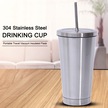 Samdoo 500ml 304 Çelik Termos Bardak, İçecek Su Için, Portatif, Pipetli Kapağıyla, Gümüş Renkli, Ofis Hediyesi