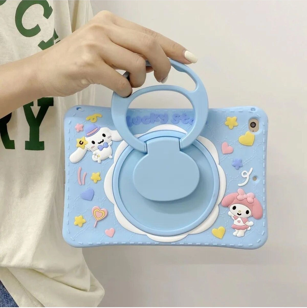Samsung Galaxy Tab A7 Lite T220 T225 T227 Uyumlu Kedi Kılıf Askılı Standlı Eğlenceli Koruyucu Kılıf Mavi