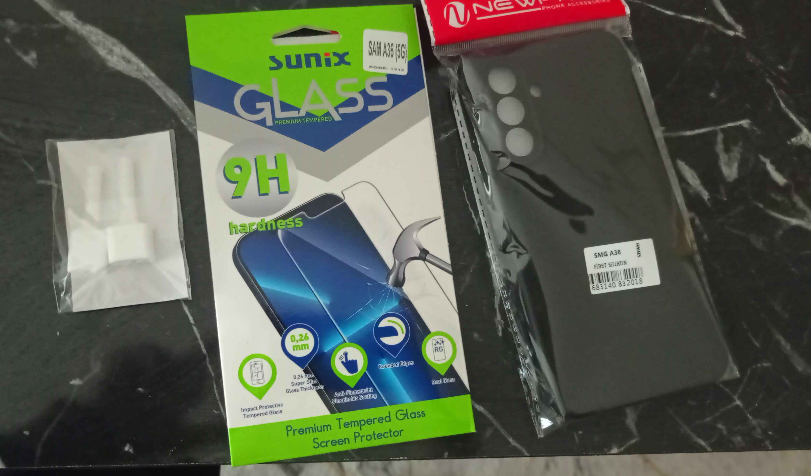 Samsung Galaxy Uyumlu A36 5g Kılıf Renkli Yumuşak Silikon Kapak Ekran Koruyucu Cam 9h Temperli -siyah Siyah