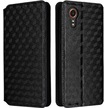 Samsung Galaxy Xcover 7 Cüzdan Kılıfı Eşkenar Dörtgen Baskılı Deri Kapak Çok Renkli