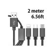 Sandwich 3 Cihazlı 2a Hızlı Şarj Kablosu - Type-c/lightning/micro-usb, 2m Nilon Dokuma, Siyah