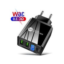 Sandwich 36w Mini Siyah Euro Şarj Cihazı, 3 Usb Qc 3.0 + Pd Hızlı Şarj, Seyahat Usb Adaptörü, 100-240v, Ev Ve Seyahat İçin