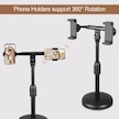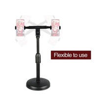 Sandwich Siyah Masaüstü Çift Telefon Tutucu, 22-32cm Yükseklik Ayarlanabilir, 360 Döner, Yayın, Tv İzleme İçin Esnek, Online D