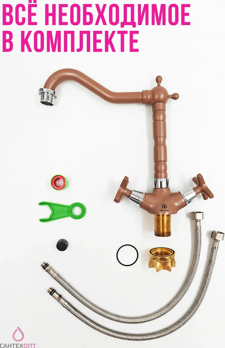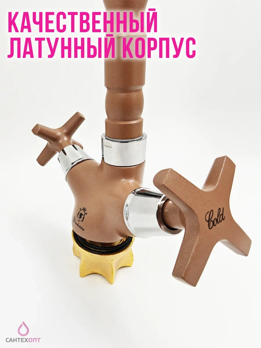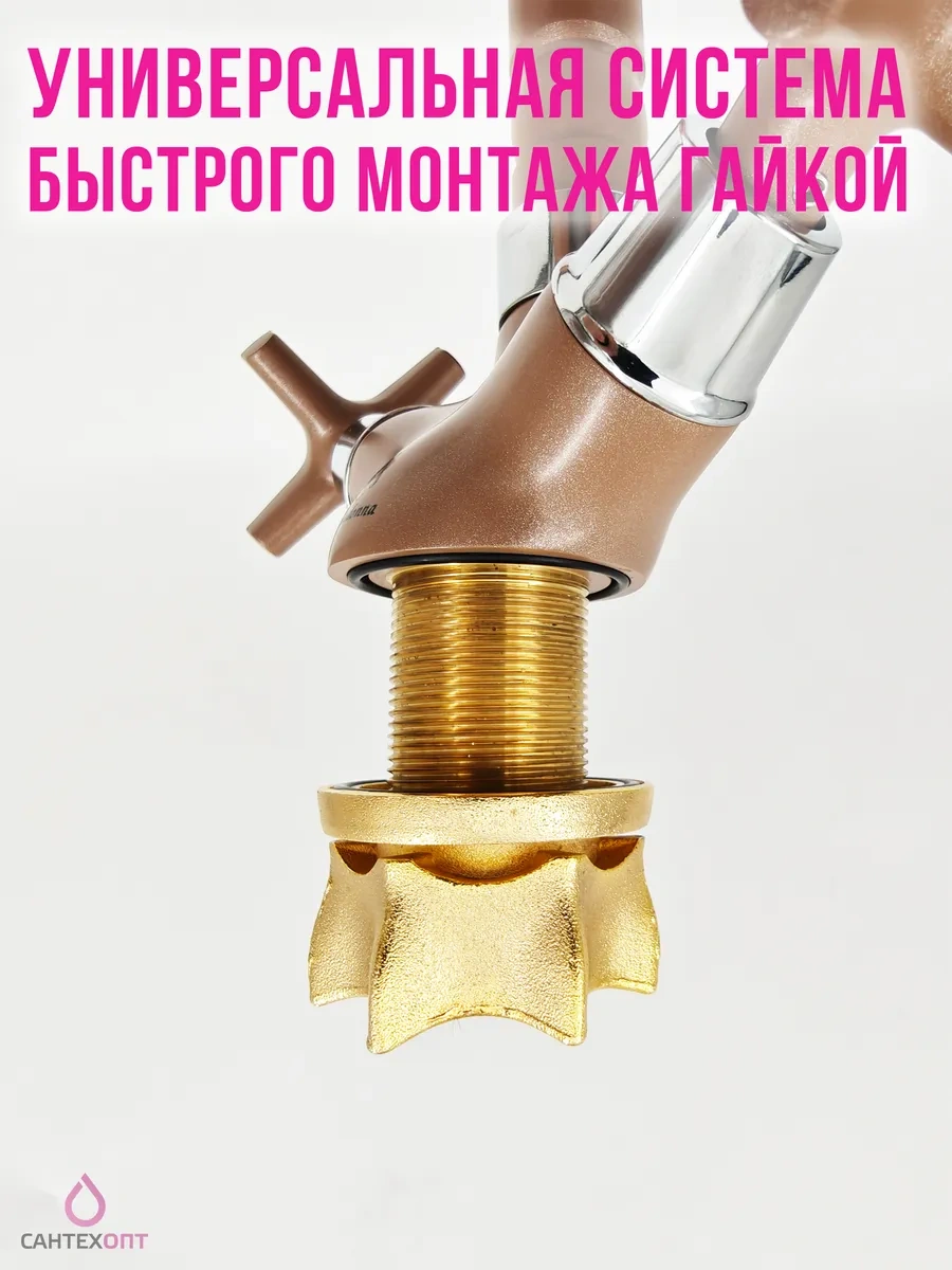 Santehopt Kulaklı Tasarımlı Pirinç Mutfak Bataryası Montajı 472911319 Kahverengi