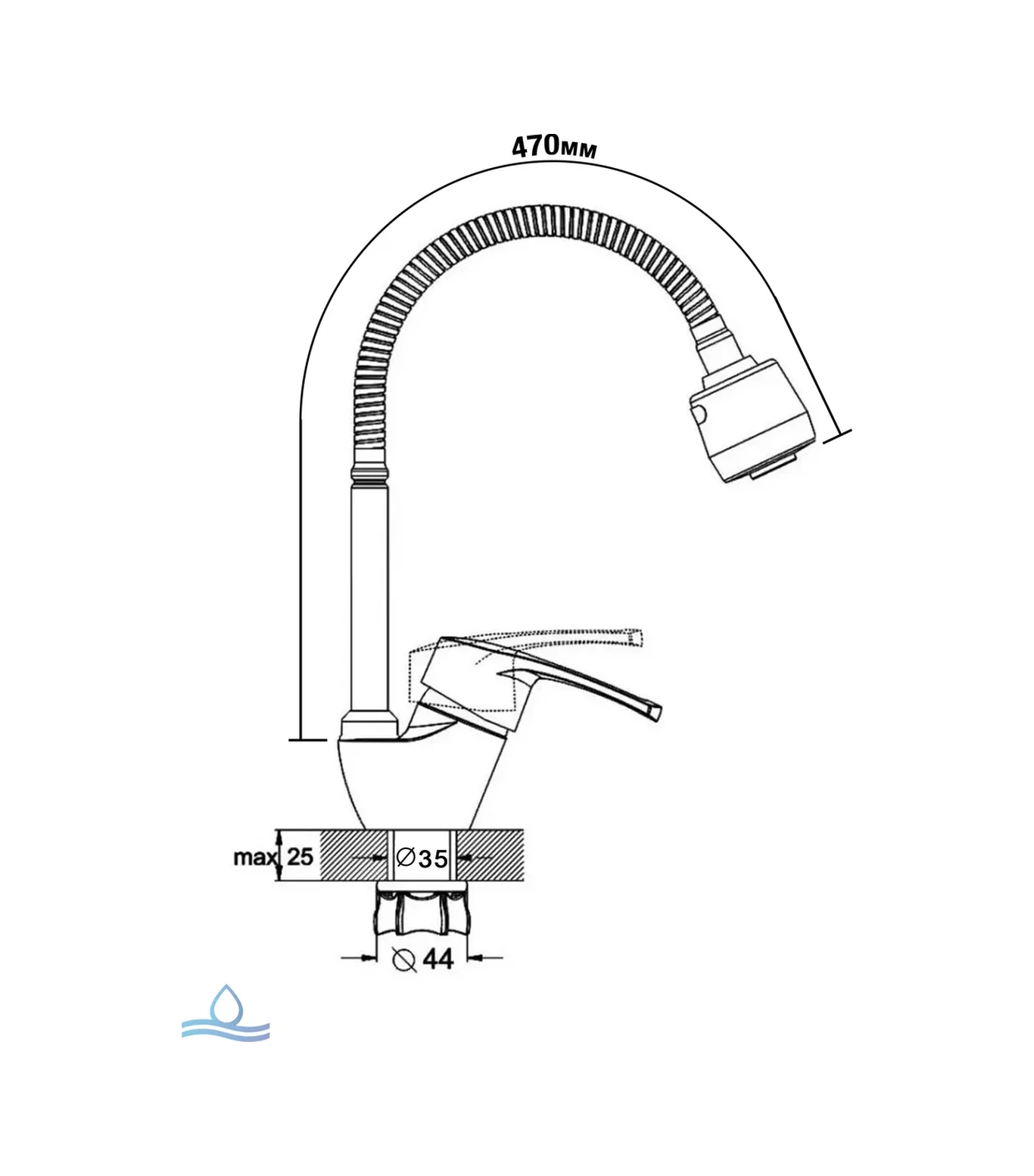 Santehvill' Mutfak İçin Esnek Duş Başlıklı Batarya. 236201371 Krom