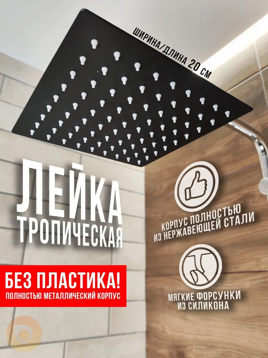 Santehvill' Paslanmaz Çelik Üst Duş Başlığı Tropokal Duş Başlığı, 20 Cm 305701385 Siyah