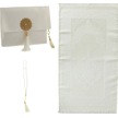 Şantuk Keseli Tafta Seccade Ve İnci Vavlı Tesbih Set , Taşınabilir Namaz Seti Krem