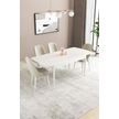 Sar Pakete Almira Serisi, Beyaz 80x132 Açılabilir Mdf Mutfak Masası Takımı 4 Adet Sandalye Krem