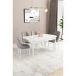 Sar Pakete Almira Serisi, Beyaz Mermer Desen 80x132 Açılabilir Mdf Mutfak Masası Takımı 4 Adet Sandalye Gri