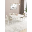 Sar Pakete Almira Serisi, Beyaz Mermer Desen 80x132 Açılabilir Mdf Mutfak Masası Takımı 4 Adet Sandalye Krem