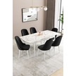 Sar Pakete Almira Serisi, Beyaz Mermer Desen 80x132 Açılabilir Mdf Mutfak Masası Takımı 6 Adet Sandalye Siyah