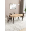 Sar Pakete Almira Serisi, Meşe Desen 80x132 Açılabilir Mdf Mutfak Masası Takımı 4 Adet Sandalye Cappucino
