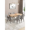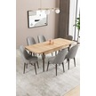 Sar Pakete Almira Serisi, Meşe Desen 80x132 Açılabilir Mdf Mutfak Masası Takımı 6 Adet Sandalye Gri