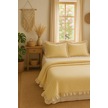 Sarı-bej % 100 Pamuk Fırfır İplik Boyalı Çift Kişilik Nevresim Takımı,modern Çizgili Nevresım Seti Sarı Bej
