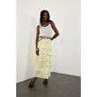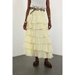 Sarı Beli Lastikli Volanlı Maxi Etek 4097 Sarı