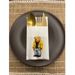 Sarı Ceketli Sevimli Ayı Baskılı Yılbaşı Kanguru Cepli Peçete Beyaz12 Adet