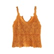 Sarı Kadın Yaz Yelek Üstleri V Yaka Kolsuz Tığ Örgü Üstleri Düz Renk Hollow Dantel Sling Sarı