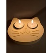 Sarı Kedi Şekilli Beton Mumluk - El Yapımı Dekoratif Çay Işığı Tealight Mumluk - Minimalist Kedi Tem Sarı