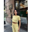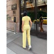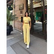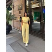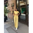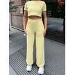 Sarı Modal Keten Desenli Bisiklet Yaka Takım Sarı