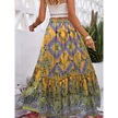 Sarı Paisley Desenli Büzgülü Etekler, Boho Pileli Yazlık Maxi Etekler, Kadın Giyim Sarı