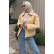 Sarı Pötikareli Cepli Kadın Mont Mg2488 Sarı