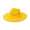 Sarı Projektör Unisex Moda Geniş Yün Kemer Düz Üst Fedora Şapka Parti Kilise Şapkaları Kap Sarı