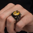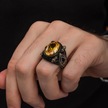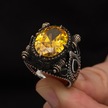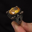 Sarı Sitrin Taşlı 925 Gümüş Erkek Yüzük Beyaz