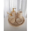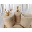 Sarı Traverten Klasik Model 5 Parça Gold Renk Geyik Aksesuarlı Banyo Seti Sarı Traverten