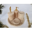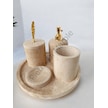 Sarı Traverten Klasik Model 5 Parça Gold Renk Kuş Tüyü Aksesuarlı Banyo Seti Sarı Traverten