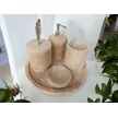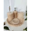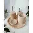 Sarı Traverten Klasik Model 5 Parça Gümüş Renk Kuş Tüyü Aksesuarlı Banyo Seti Sarı Traverten