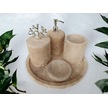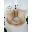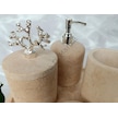 Sarı Traverten Klasik Model 5 Parça Gümüş Renk Mercan Aksesuarlı Banyo Seti Sarı Traverten