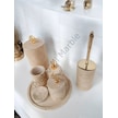 Sarı Traverten Klasik Model 7 Parça Gold Renk Mercan Aksesuarlı Banyo Seti Sarı Traverten
