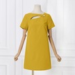 Sarı Vonda Bayan Yaz Yuvarlak Yaka Kısa Kollu Yırtmaçlı İnci Düğme Düz Tek Renk Kısa Elbiseler