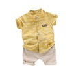 Sarı Yaz Bebek Erkek Günlük Kısa Kollu Harfli Baskılı Tişört Üst + Şort Kostüm Seti Sarı