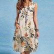 Sarı Zanzea Kadın Günlük Çiçek Baskı Yaz O-boyun Kolsuz Elbise