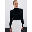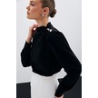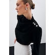 Sateen Düğmeleri Taş Detaylı Bluz - Siyah