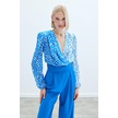 Sateen Kruvaze Desenli Bodysuit - Ekru-lacivert Ekru - Lacivert