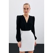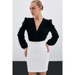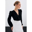 Sateen Kruvaze Vatkalı Bodysuit - Siyah