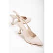 Saten Arka Açık Ten Kadın Topuklu Ayakkabı-2740 - Ten Ten Rengi
