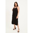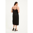 Saten Dantelli Arkası Çapraz Midi Elbise-1520 Siyah
