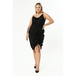 Saten Degaje Yaka Drape Detaylı Elbise-1486 Siyah