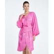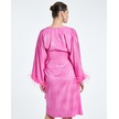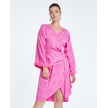 Saten Dokulu Tüy Detaylı Kruvaze Elbise Kuşaklı Ve Drapeli Özel Tasarım Fuşya