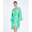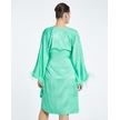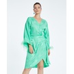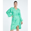 Saten Dokulu Tüy Detaylı Kruvaze Elbise Kuşaklı Ve Drapeli Özel Tasarım Yeşil