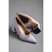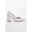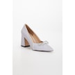 Saten Taşlı Kalın Topuk Gri Kadın Stiletto-2032-GRİ