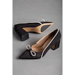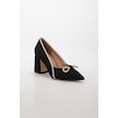 Saten Taşlı Kalın Topuk Siyah Kadın Stiletto-2029-SIYAH Siyah